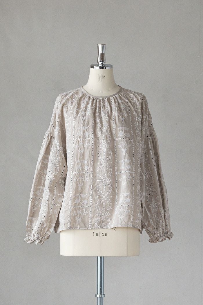 2種類の刺繍を組みわせた華やかなリネンブラウス