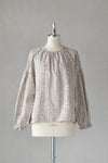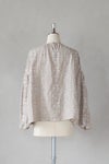 植物の息吹を表現したテキスタイルのブラウス。