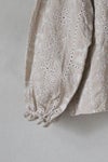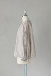 アンティーク刺繍生地のような雰囲気も感じるテキスタイルで、リネン素材の清涼感が春夏のスタイリングに心地よい1枚です。
