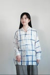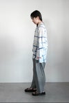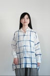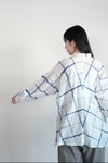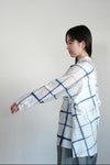 本コレクションでは、インドにてコットン/シルクかでぃにインド藍をのせてチェック柄を描きました。
