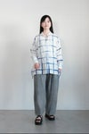 リネンには節があり、強く撚ると細い部分が切れてしまうため、繊維が切れることのないよう水の中でゆっくりと糸をねじり、撚糸を均一に施す『水撚り』という技法で作られた1枚です。