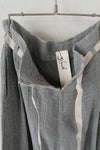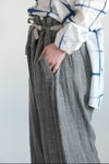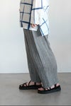緯糸に水撚りという特殊な技法での撚糸をしたリネンをつかい、ジョーゼットに織り上げたパンツ。