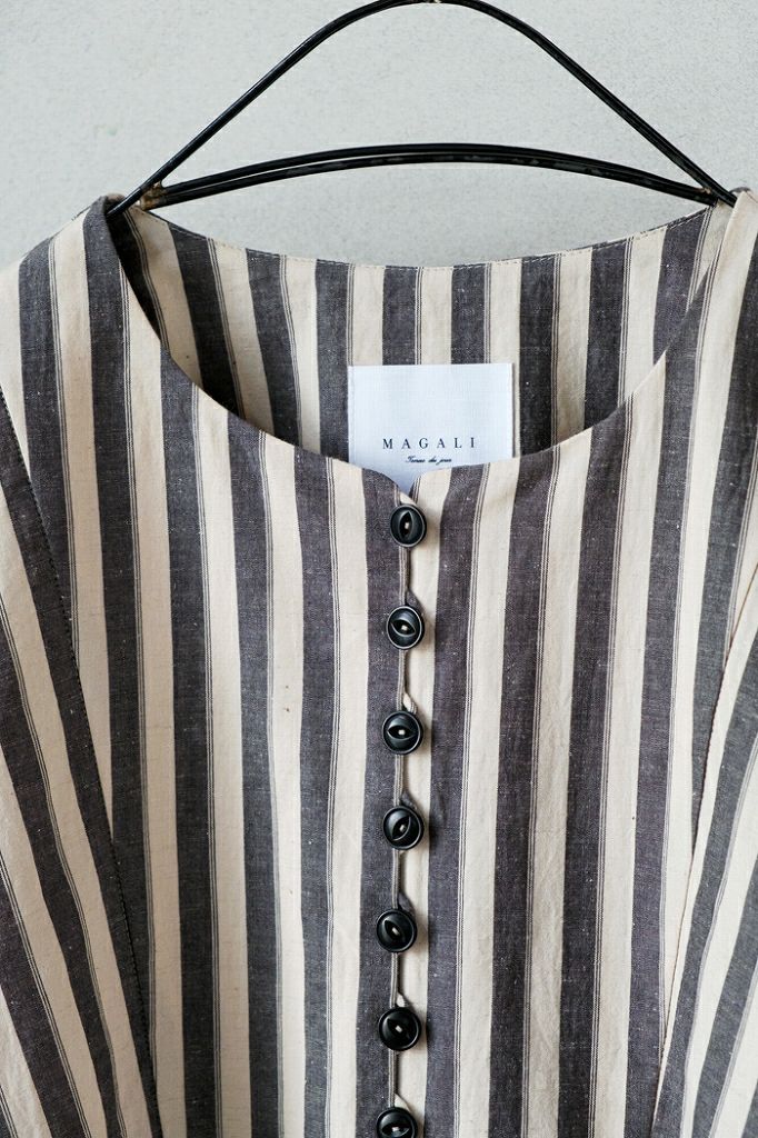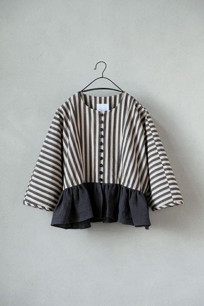 ボーダーリネンギャザースリーブプルオーバー(24SS)